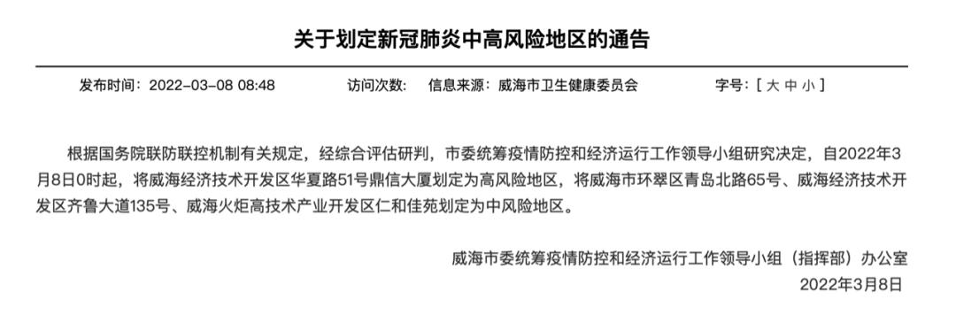 〖伍〗、 栖霞区关于调整风险区域的通告根据《新型冠状病毒肺炎防控方案》,经专家研判,决定自2022年11月30日5时起,将仙龙湾小区35栋一单元由高风险区调整为低风险区。