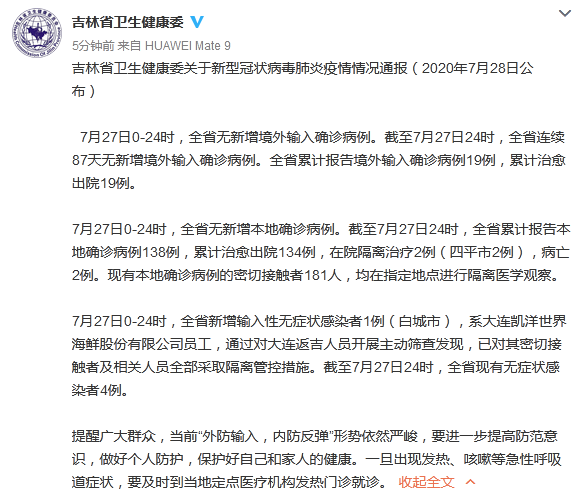 吉林省是国内首次大规模使用辉瑞新冠病毒治疗药(Paxlovid)吉林市今日新增多少人确诊的地区吉林市今日新增多少人确诊,该药物于3月20日晚紧急运抵长春吉林市今日新增多少人确诊,主要用于满足当地新冠疫情防控中吉林市今日新增多少人确诊的治疗需求。使用背景吉林省在3月1日至3月22日期间,本土累计确诊病例达18691例(不含无症状感染者),主要集中在长春市和吉林市。