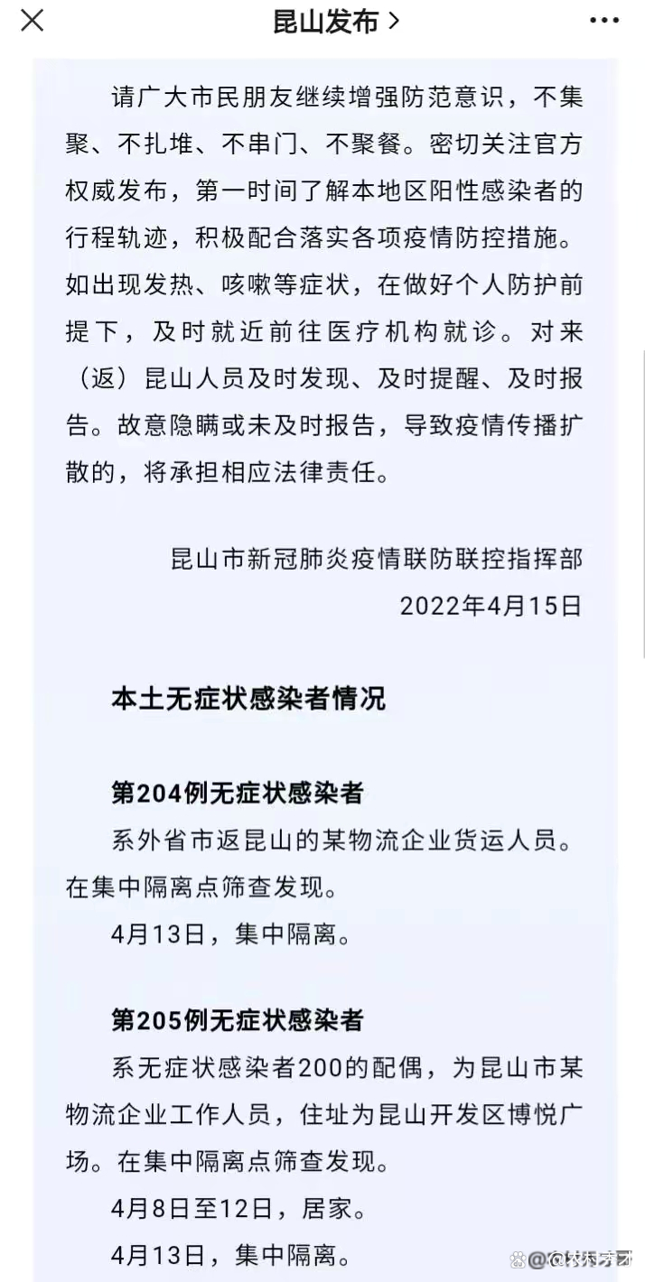 月27日苏州新增本土无症状感染者7例昆山本土病例最新消息,均为周边外省市中高风险地区来返苏州的货运、通勤等重点人员及其关联人员昆山本土病例最新消息,具体信息如下昆山本土病例最新消息:无症状感染者68:系外省市返苏州货运人员,住址为太仓市城厢镇花墙村。无症状感染者69:系外省市来苏州水产批发货运人员,居住在外省市。无症状感染者70:系无症状感染者69的密接,住址为吴江区黎里镇金家坝群众村。